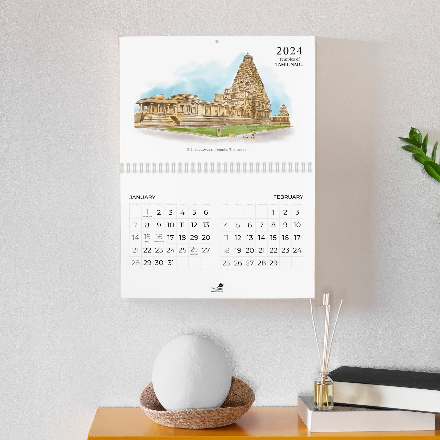 2025 wall Calendar temples of Tamil Nadu India Painted souvenir